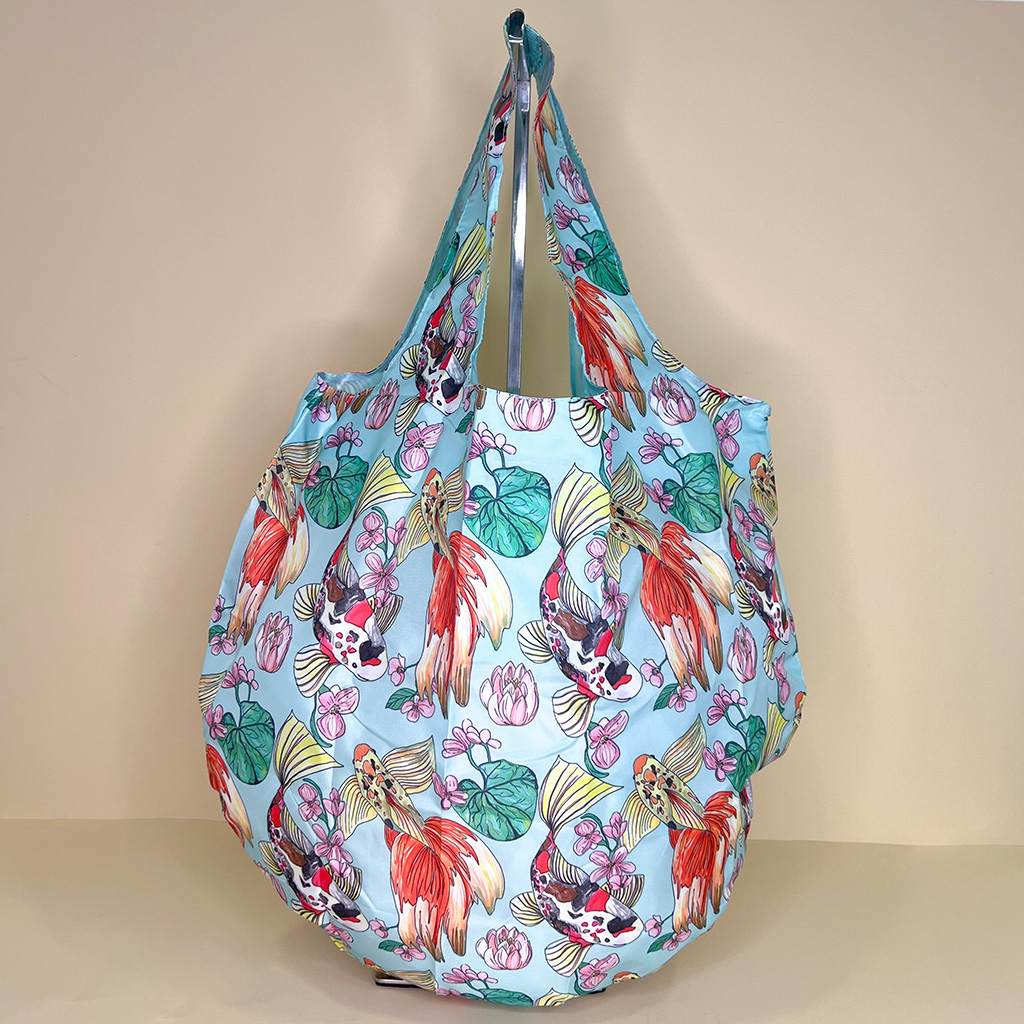 Borsa richiudibile shopper fantasia carpe e fiori pratica e leggera in poliestere.