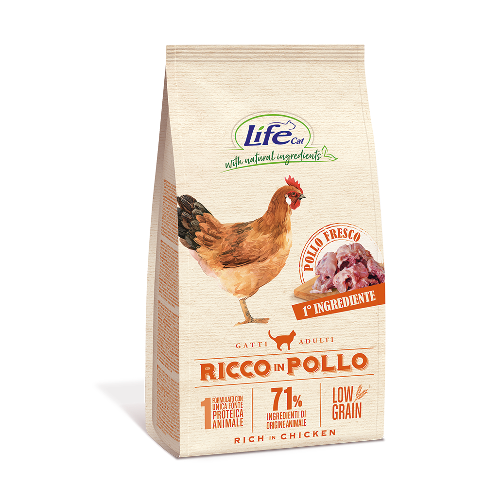 Pollo fresco* (35%), Pollo disidratato (30%), Riso* (8,2%), Patate* (7,5%) Farina di riso* ( 5,2%), Farina di riso integrale* (5%), Proteine animali idrolizzate, Grasso di pollo, Sostanze minerali, Inulina di cicoria – fonte di FOS (0,1%), Mannano – oligosaccaridi* (0,1%), Yucca schidigera* (0,01%).