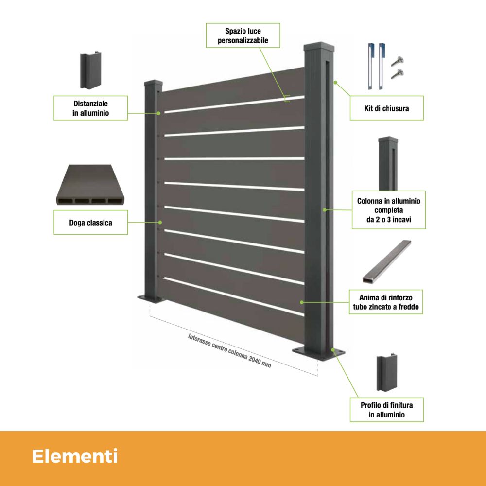 •Design contemporaneo: Doghe smussate intervallate, con colori di tendenza che valorizzano ogni spazio esterno.