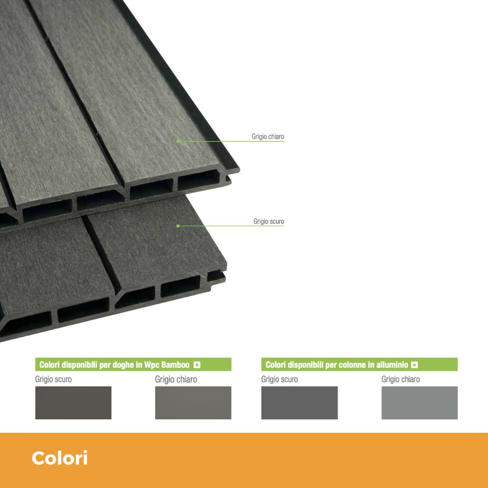 CON COLONNE IN ALLUMINIO E DOGHE IN WPC BAMBOO